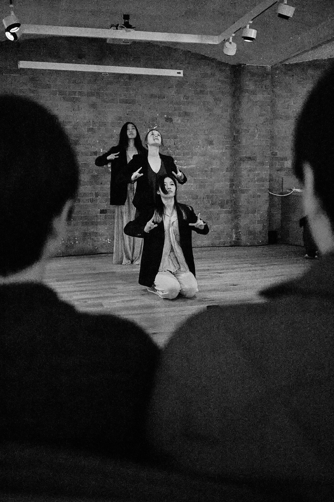 PATRYCJA WOJCIECHOWSKA: Thank you for agreeing to speak with me. So I wanted our conversation to begin with a closer look at the origins of your collaboration. Xinyue, this is a slight turn in your practice- up to that point your storytelling was rooted in moving image and visuals associated with it. Now, you tell the story in collaboration with others, through bodily movement. It’s a different process, not only when you think about the medium itself, but also in terms of dynamics with other people, and with other beings too. So let's lay the ground with the collective’s beginnings; how did you come together to work together?